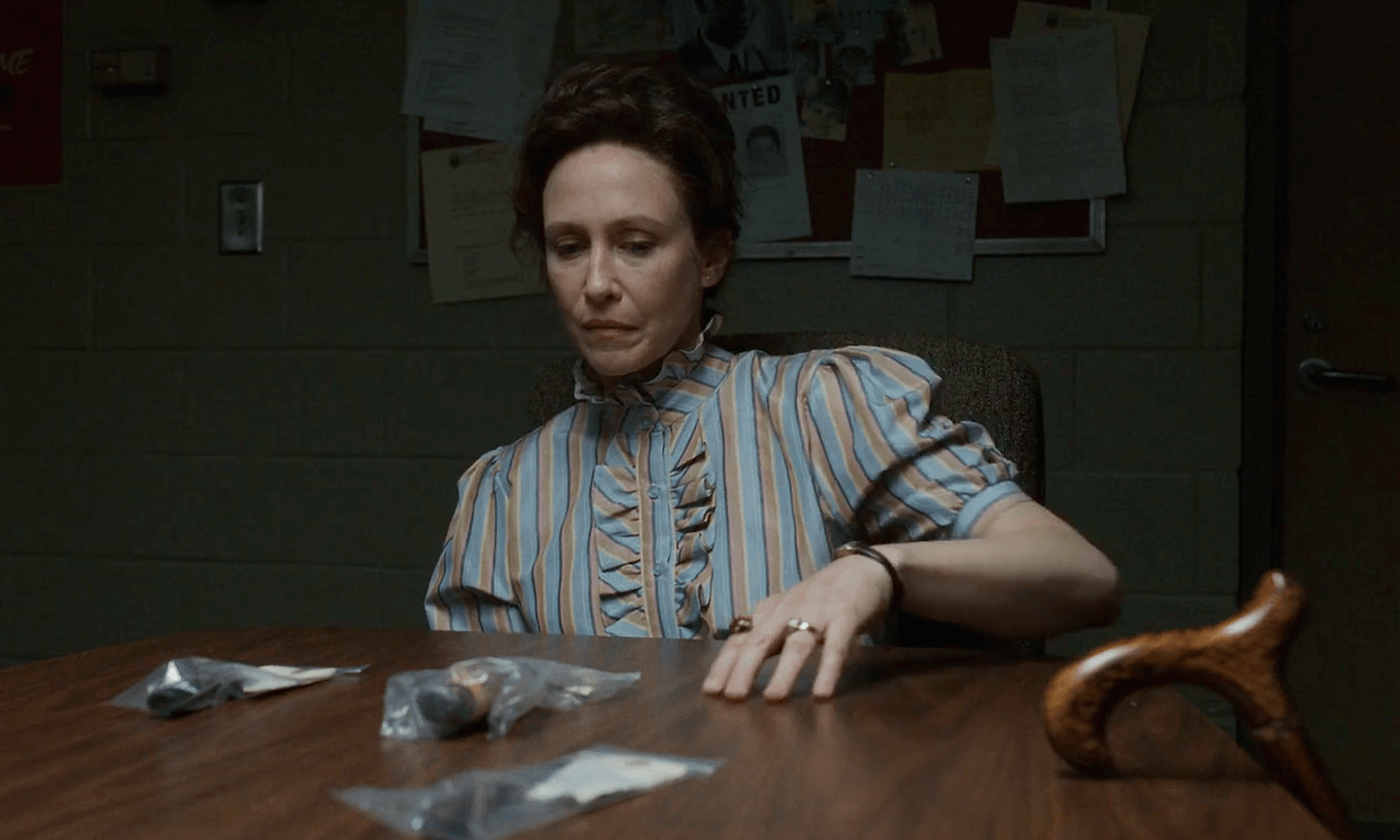 # 능력을 시험하기 위해 가지고 온 증거물들 중 살인사건에 쓰인 무기를 정확하게 골라내는 로레인