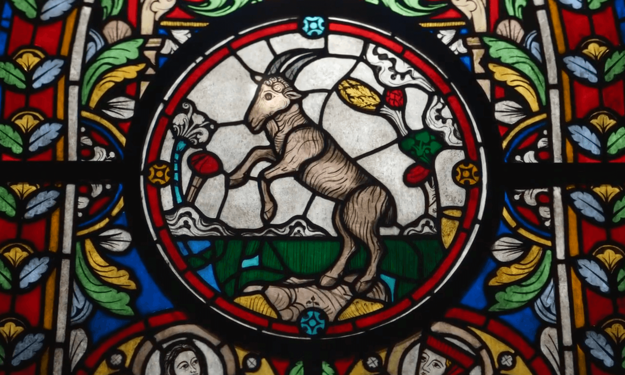 # 예배당에 있는 염소가 그려진 스테인드 글라스