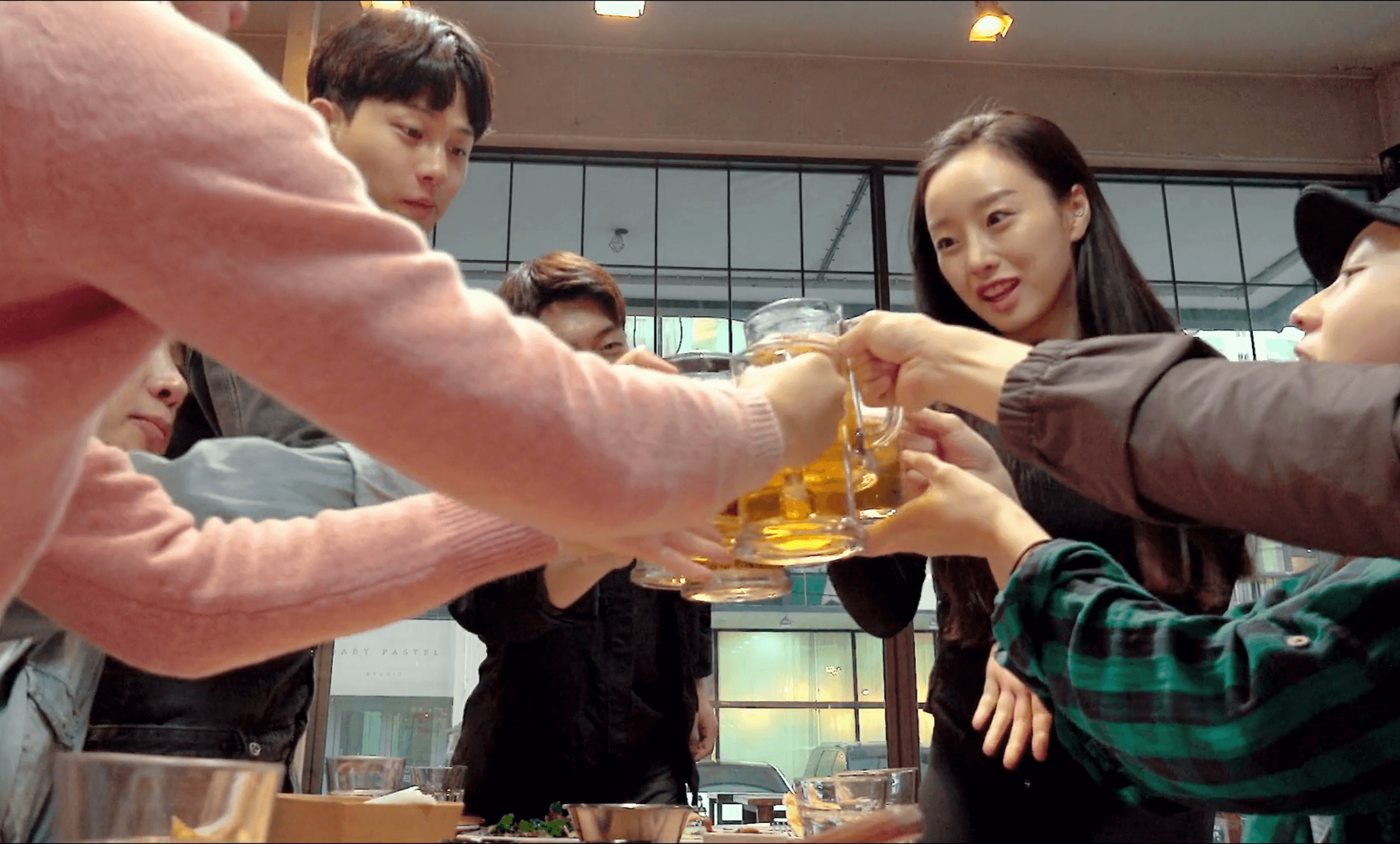 # 출발하기 전 들뜬 마음으로 함께 맥주를 마시고 있는 호러 타임즈 체험단