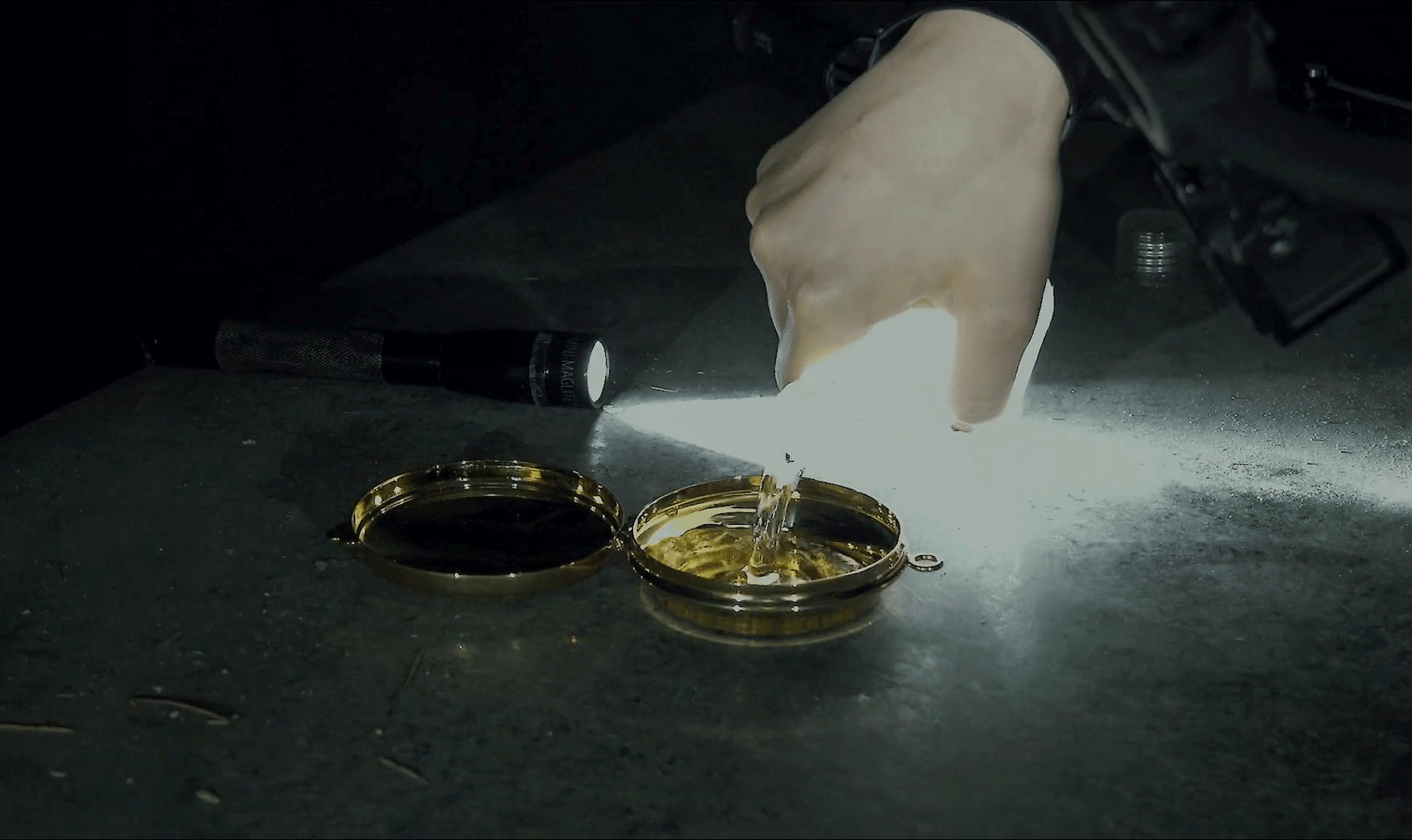 링거와 주사기, 현미경 등 당시 알 수 없는 실험에 사용되었던 도구들이 곳곳에 널브러져 있다.
