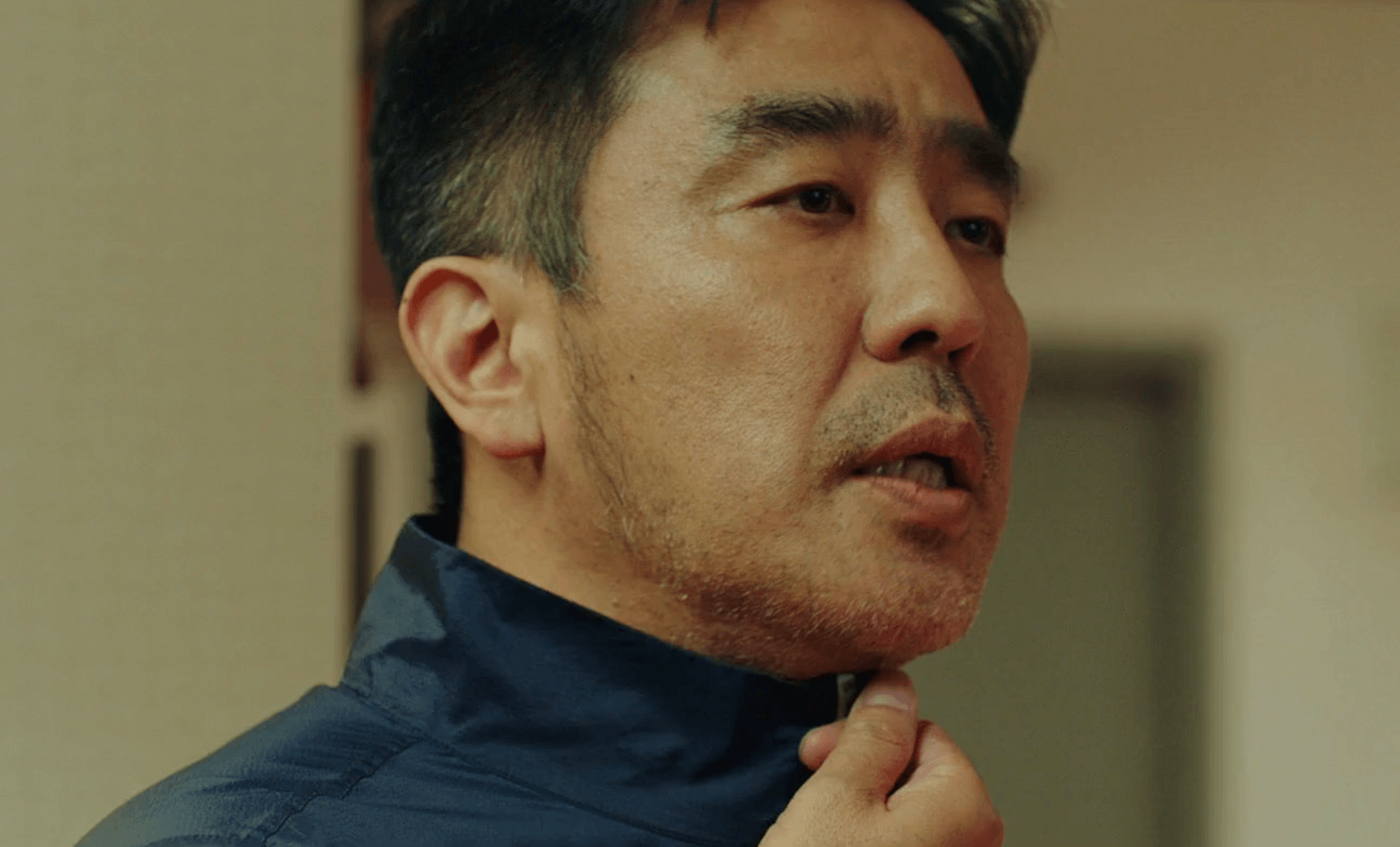 # 아내(김지영) 앞에서 옷을 단단히 여미고 있는 고반장