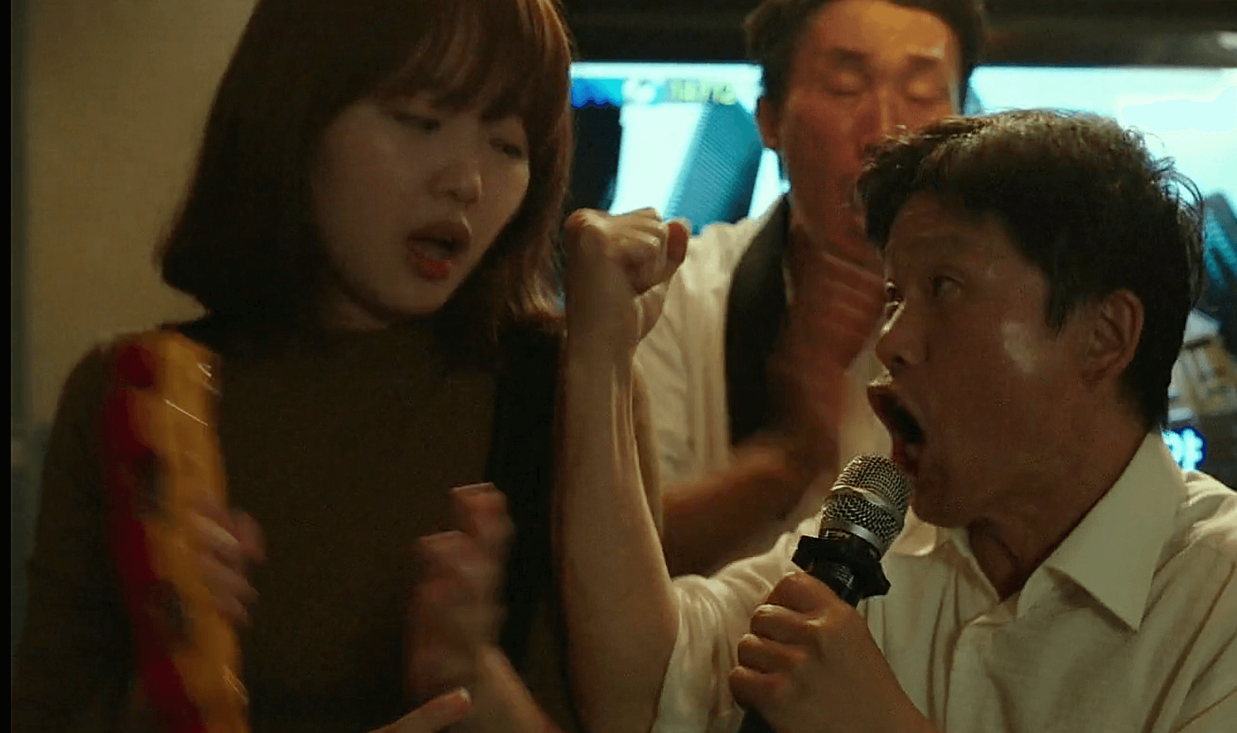 # 은행 동료들과 함께 노래방에 와 있는 은숙
