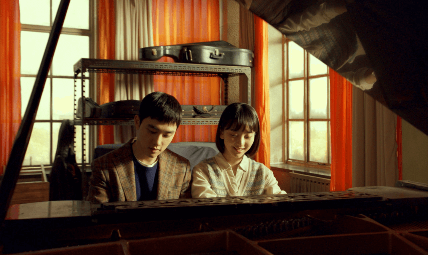 # 유준의 집에서 피아노를 치고 있는 정아